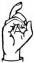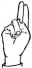 На ћирилици написано МИНА БЕТЕГАЛО састоји се из 12 слова [?]. Исписано ћириличном једноручном азбуком за глувонеме:
